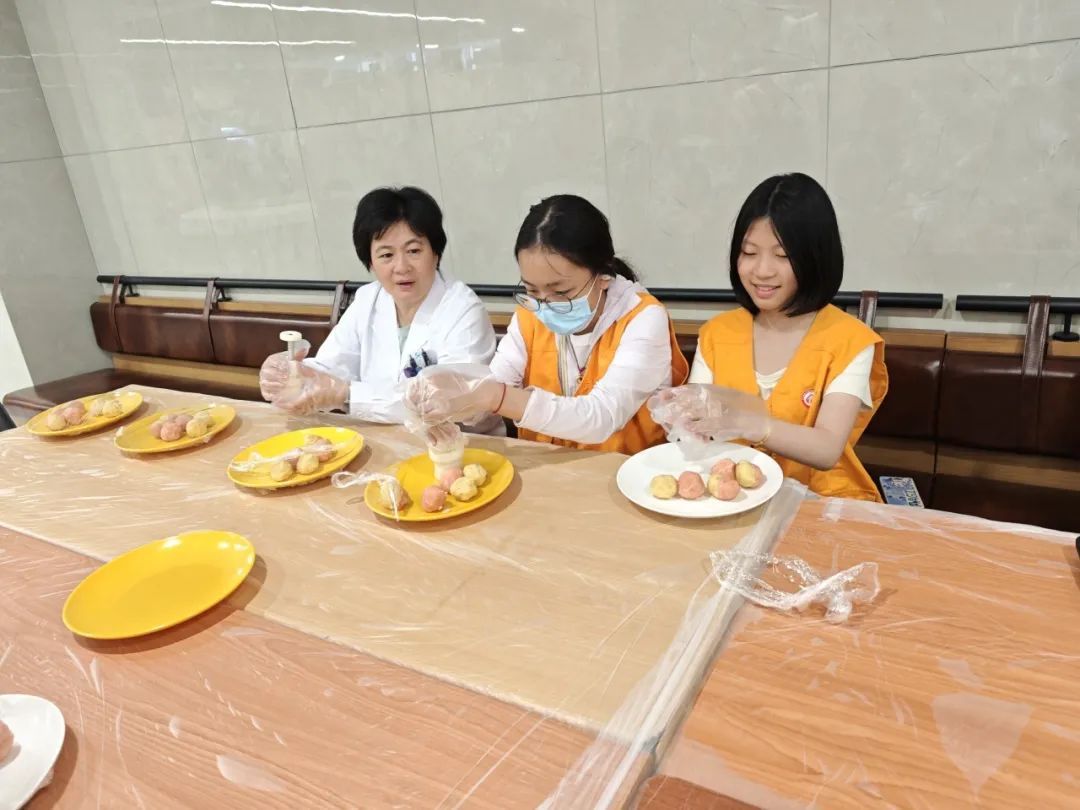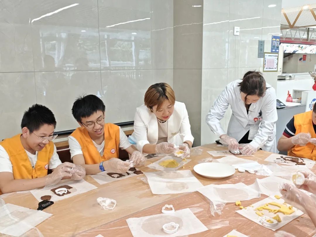 DIY 爱心便当制作环节更是充满了温情。孩子们在食堂师傅的指导下,为父母精心制作饼干及绿豆糕。他们认真地挑选食材、搭配营养、摆盘装饰,每一个步骤都饱含着对父母的爱。