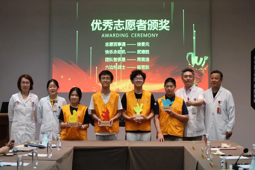 7月18日的结业仪式上,四支队伍的汇报惊艳全场。党委办公室主任李妍斐、工会常务副主席苏家春、门诊部副主任秦越萃、保卫处副处长(主持工作)贾明昊为优秀志愿者颁发“志愿百事通”“快乐永动机”“团队智多星”“六边形战士”荣誉。
