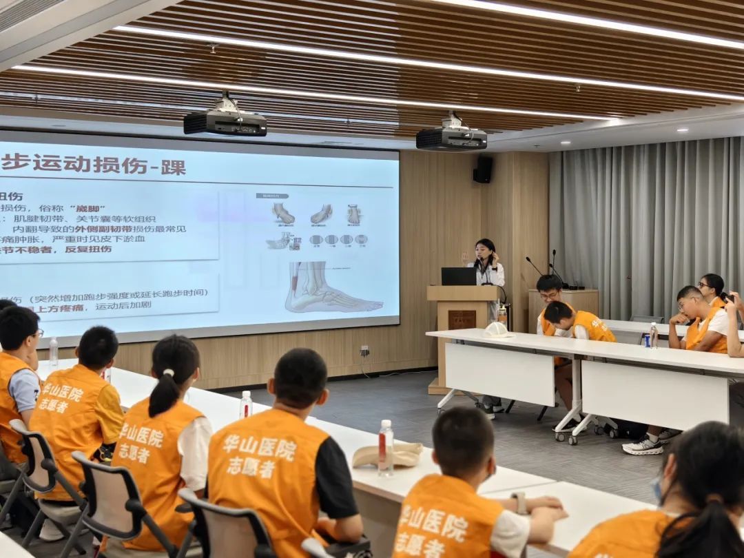 营养科营养师马妮娜和住院医师人文实践基地黄铭汝为大家精心准备了《学生党暑期在家怎么吃》和《跑步运动损伤的防与治》科普讲座。从一杯奶茶的热量计算到一双跑鞋的选择技巧,老师们都细致入微地讲解。孩子们认真做着笔记,时不时举手提问,收获满满。