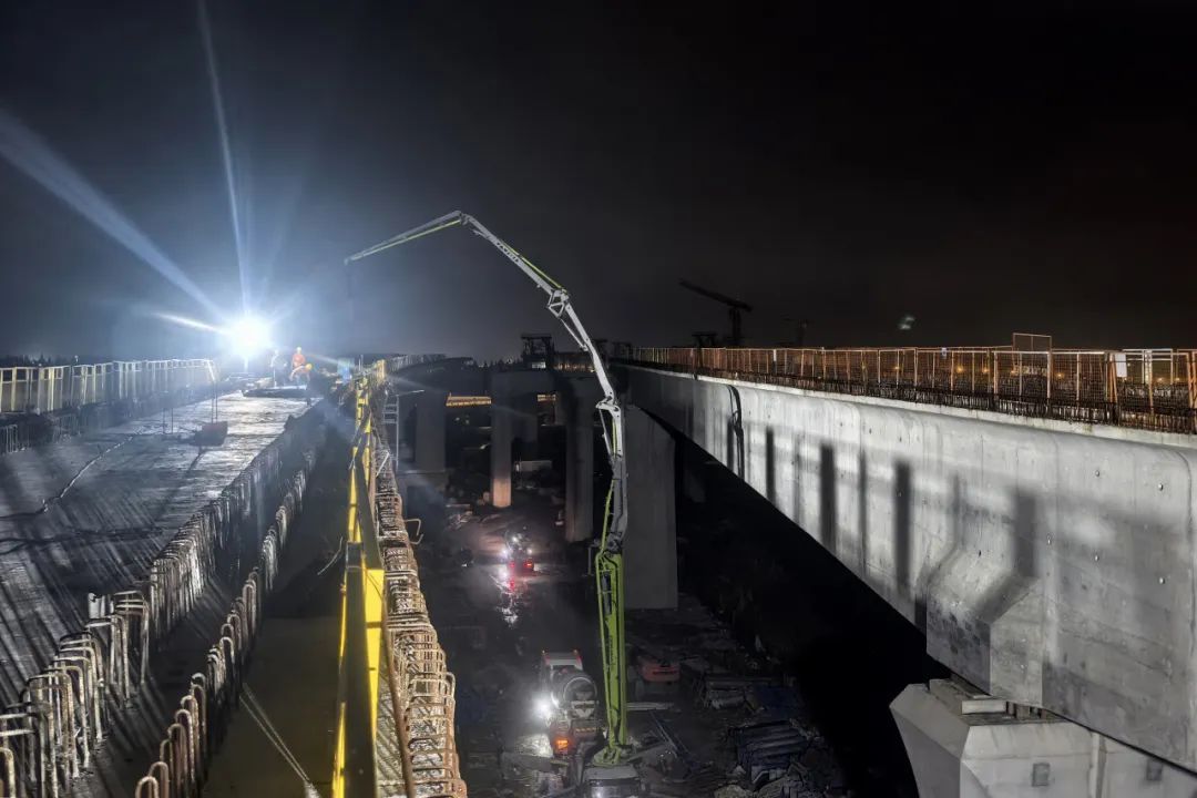 为确保桥梁施工质量,项目团队聚焦原材料把控、施工工艺优化以及施工监控等关键环节,实施严格管控,有效保障了桥梁线形的平顺,使节段及整体桥梁的施工精度与内力均满足设计规范要求。此次两座100米连续梁的顺利完工,也为后续跨越两港公路的连续刚构施工提供了理论支撑与实践经验。