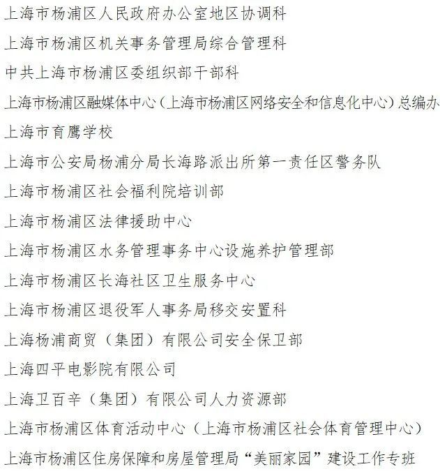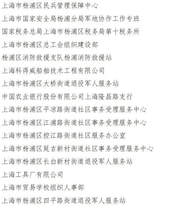 为充分发扬民主、广泛听取意见、接受社会监督,现就拟表彰对象进行公示,公示期5日。对杨浦区双拥模范个人和单位拟表彰对象有异议的,请于公示期内向杨浦区双拥和退役军人事务工作领导小组办公室反映,以单位名义反映情况的材料需加盖单位公章,以个人名义反映情况的材料应署实名,并提供联系电话。