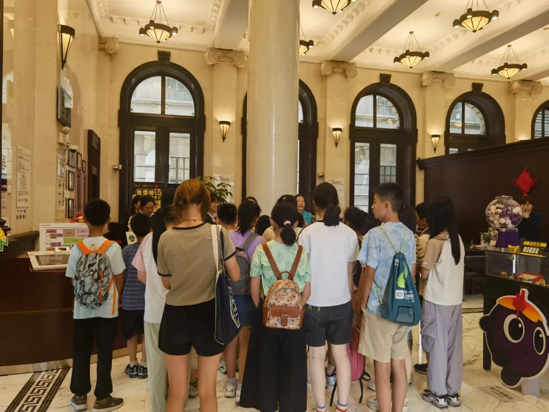 下午两点半,学员们乘车抵达中国光大银行上海外滩支行。这座法国古典主义建筑风格的大厦曾名“东方大楼”或“汇理大楼”,属于外滩历史文化风貌区,于1911年至1914年翻建。走进这座拥有百年历史的外滩建筑,富丽典雅的内饰引得学员们啧啧称奇。“我之前在电视上看过这样的建筑,但是今天是第一次走进这种建筑的内部,感觉很‘高大上’。”学员杜柏宇感叹道。