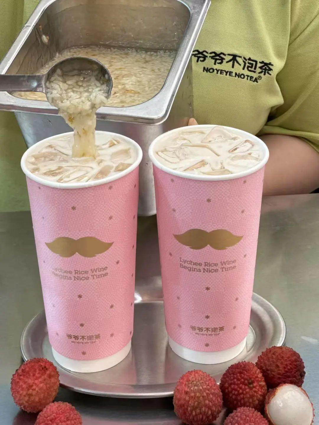 此次升级的荔枝冰酿,爷爷不泡茶创新性地将非遗工艺融入现代奶茶中。他们选用非遗工艺制作的湖北孝感米酿为核心原料,100%天然糯米发酵,搭配NFC荔枝汁和花魁单丛茶底,将传统非遗风味调制成年轻人更喜欢的味道,让来自全国的消费者体验到来自湖北非遗文化的魅力。爷爷不泡茶还同步推出了“开醺限定款”,添加鲜榨米酒,让消费者拥有“上班小确幸,下班更尽兴”的快乐。