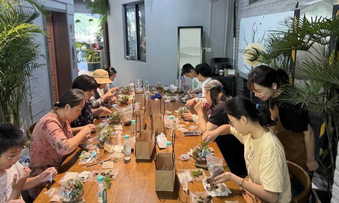 大家捧着自己完成的作品说:“原来这里是块空地,现在变成园艺中心,我们在家门口就能学到有趣的手艺。”“这个小盆景我要放在书桌上,天天看着心情都好。”
