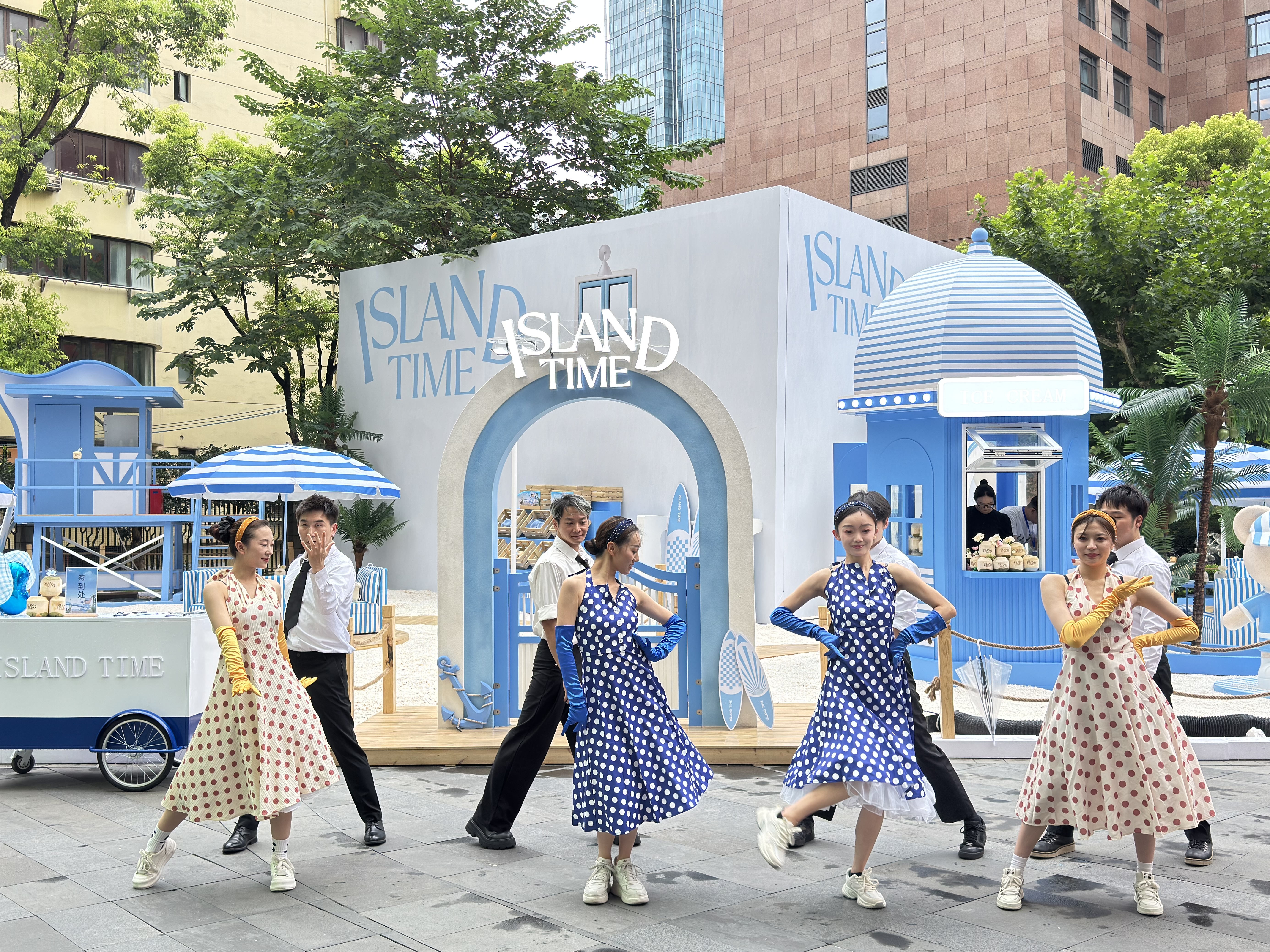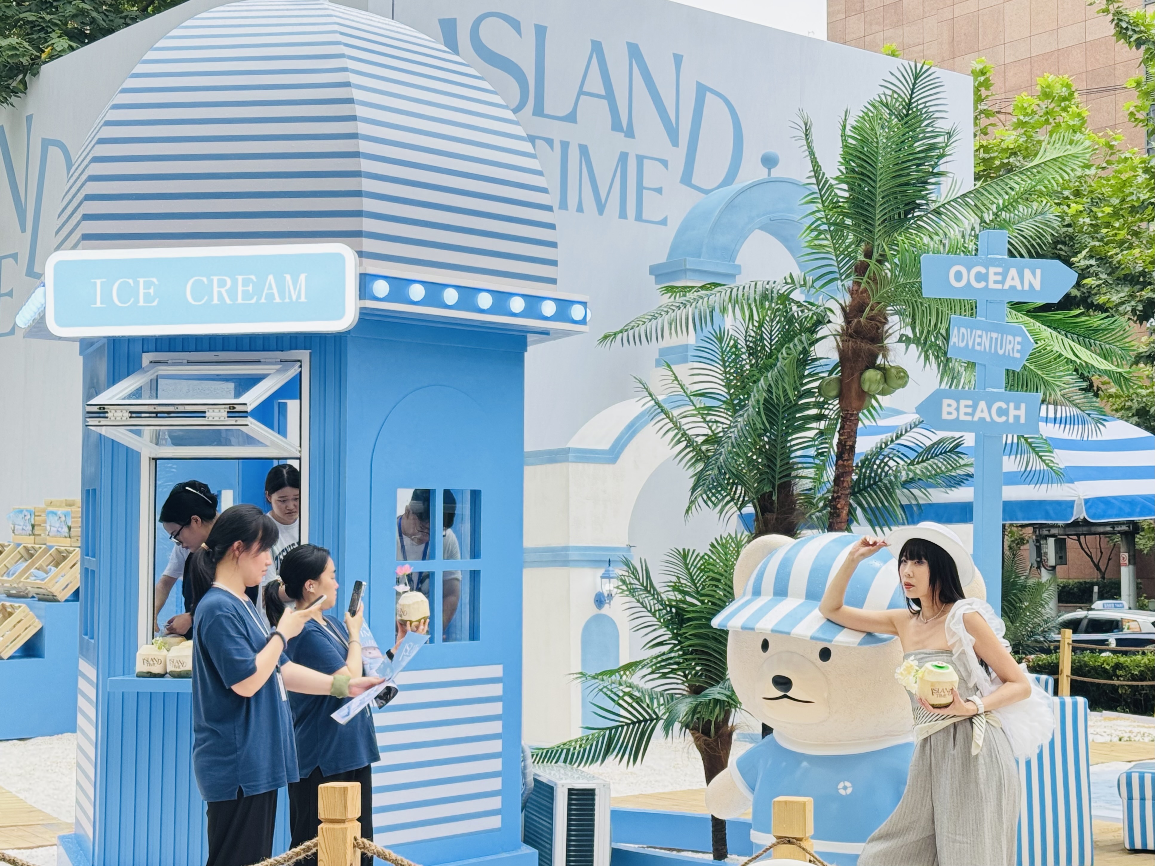 7月18日至9月14日,坐落于静安寺商圈核心地段——愚园路68号的上海CP静安开启“夏日海岛造浪季Island Time”,椰林摇曳、细软白沙、蓝白躺椅……户外草坪广场“变身”蓝白风格的海岛秘境,为市民游客提供都市中心的松弛感假日新去处。