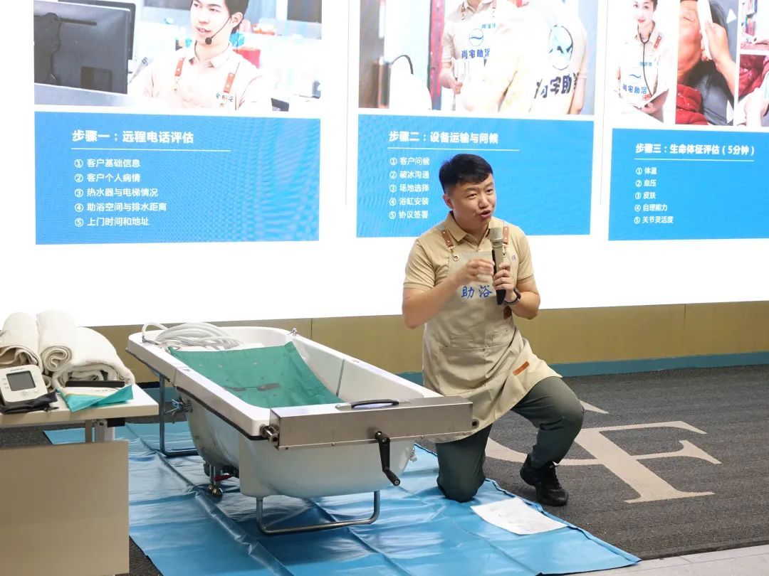 在培训启动仪式现场,还邀请了落地闵行的上海市养老科技产业园内的小V助浴企业,生动演示了纳米技术助浴及相应的助浴科技产品,受到了广泛赞誉。