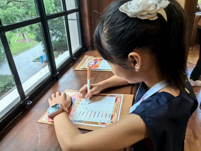“听到20世纪30年代老唱机播放的声音,我感觉像是穿越到了过去。”马上就要升七年级的何同学认真写下自己对歌曲的评分,《国际歌》《渔光曲》《卖报歌》……这些爷爷奶奶哼唱的歌让她感觉既熟悉又陌生,“这次的活动代入了故事剧情,每个人还要完成任务,更加引人入胜,让我们更有学习的兴趣。”