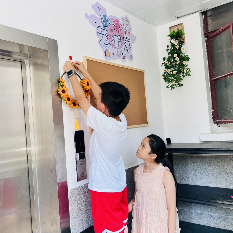 从安装门牌号、摆放花架,到居民们的旅游照片,还有孩子们亲手制作的扭扭花环的上墙展示,白玉三个楼栋的居民们齐动手、共参与,用集体的力量扮靓楼道角落。