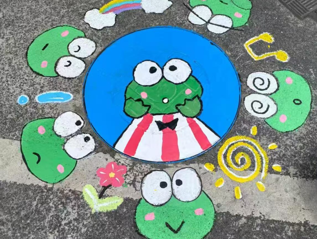 “这个小青蛙太有意思啦!”在楼组文件建设的同时,白玉一委又开始了“由内而外”的美丽。社区小主人们化身“神笔马良”,冒着酷暑,以社区为画室,以“井盖”为画布,在110-112号楼道前挥毫点墨。