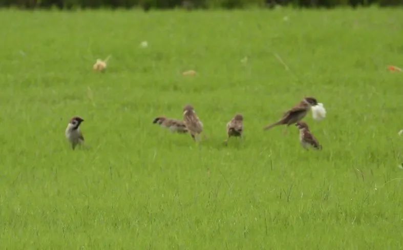 移步换景来到梨园旁的小树林,这里的鸟类多样性更令人惊喜,多种“明星鸟种”相继亮相。只见一只乌鸫正在草丛中专注觅食,它那金黄色的眼圈在夕阳下闪闪发亮,探头探脑的可爱模样引得人忍俊不禁。