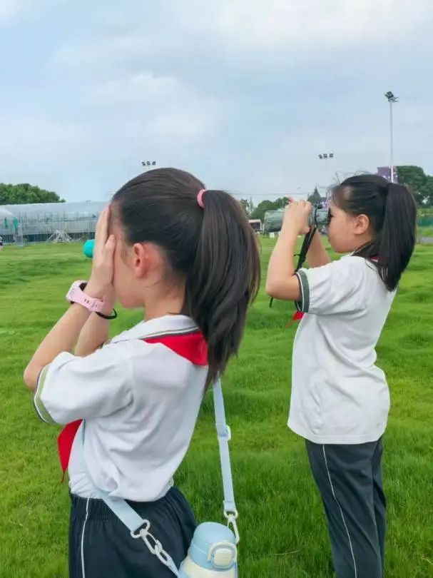 孩子们手持望远镜、记录本,穿梭于