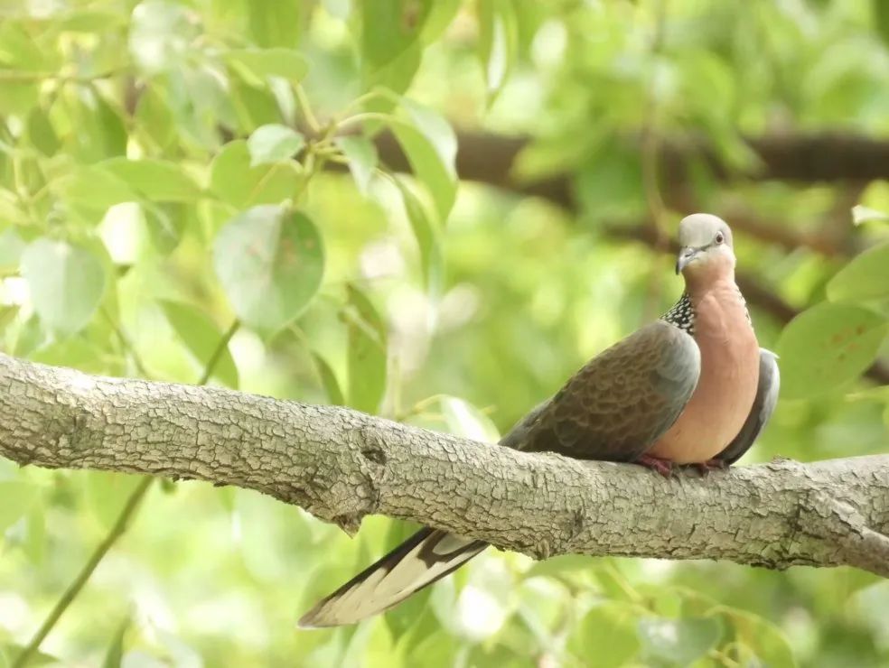 忽地,只见在树叶阴影里两只不同花色和体型的小鸟正在一展歌喉。“这两只是什么鸟?”孩子们纷纷向领队请教。“颈部有珍珠状斑纹的是斑鸠;头顶羽冠的是戴胜,是以色列的国鸟呢!”听到这些有趣的科普知识,孩子们连连发出惊叹。工作人员适时做出“嘘”的手势,示意大家继续安静观察,不要惊扰这些可爱的林间“精灵”。