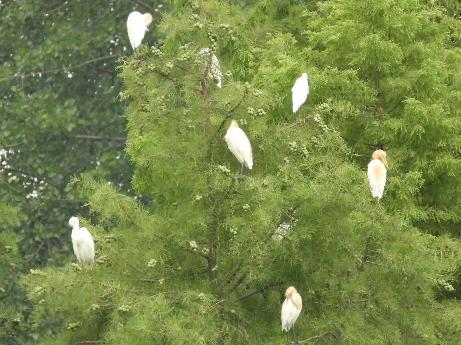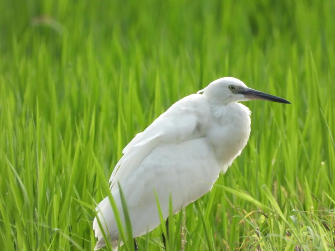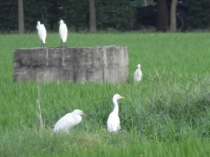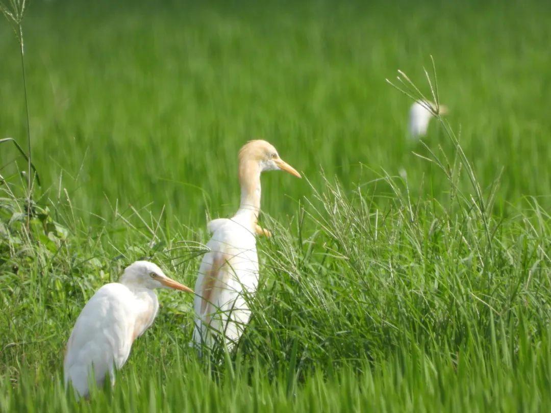 最后一站是在稻田边,穿过田埂,稻浪随风起伏,这里俨然是鹭鸟的乐园,成群的鹭鸟或优雅伫立田埂,或展翅掠过稻浪,无数白墨点缀在绿色的稻浪上,形成一幅和谐的田园画卷。