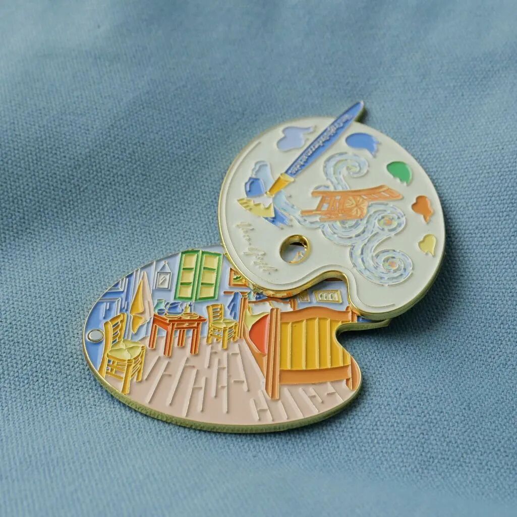 工作人员介绍,这些热门文创大多颇具巧思,“调色盘冰箱贴可以翻开,里面藏着正在展出《梵高在阿尔勒的卧室》这幅画。”