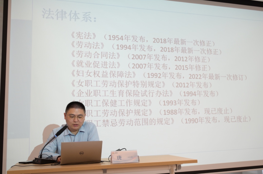上海申浩律师事务所合伙人律师、静安区总工会法律援助律师唐一围绕女职工劳动保护法律解读和各类案例分析,为大家深入浅出地讲述了女职工,尤其是女性新就业形态劳动者在遭遇性别歧视、生育保障不公对待、劳动合同争议、受伤被骚扰等情况时的维权思路和途径,增强女工干部们的法律意识和实务操作能力。