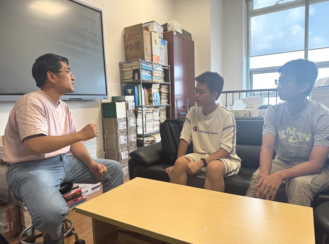 谢启鸿与王惟钦(右一)分享高等代数学习的技巧
