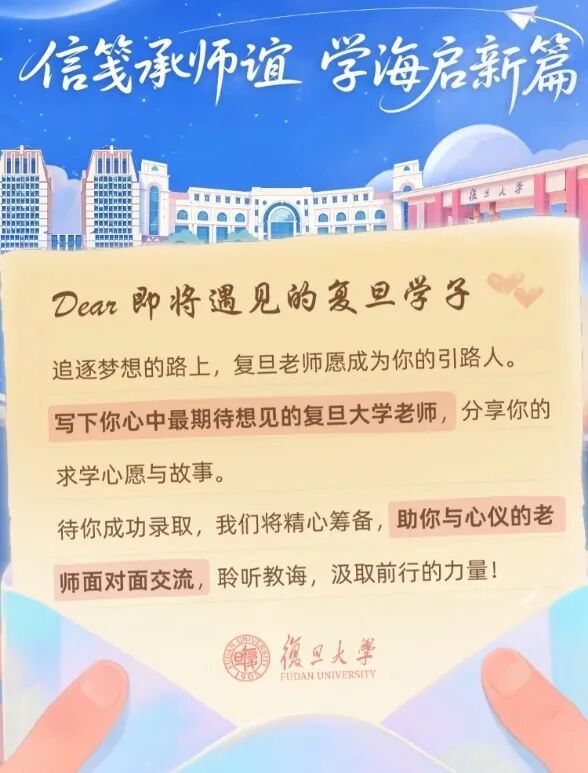 从专业上最直接的指引,到人生规划上豁然开朗的启迪;从被老师的谦逊与温暖所鼓励,到对未来复旦生活充满信心……