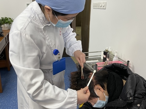 奉贤区中医医院皮肤科拥有温度可控、熏洗时间可控的洗头机,采用科内协定方“海艾头皮洗方”,对头皮进行熏洗,以达到清热凉血、燥湿止痒的疗效。