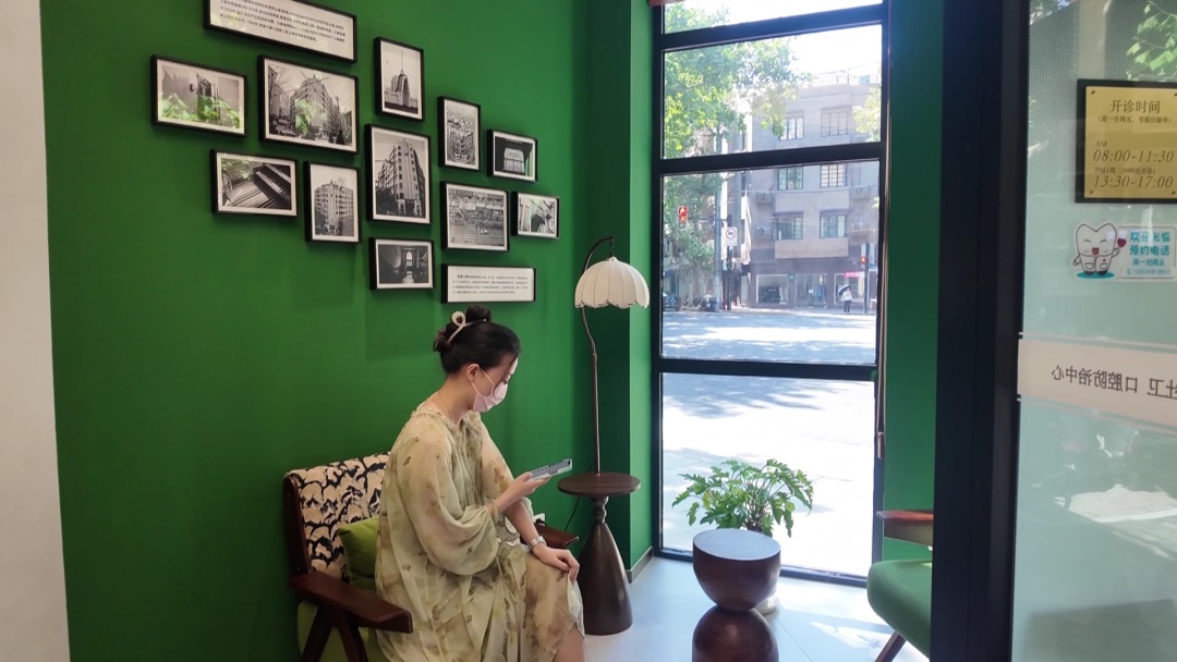 不同于传统口腔门诊“白茫茫”的刻板印象,这里的环境充满巧思。推门可见墨绿色墙面的休息区,市民可透过落地窗欣赏南昌路街景,公共区域以开放式共享设计融入海派文化元素,让就医氛围更显舒适。在周边工作的黄女士,趁午休来此洗牙后称赞:“这里亮堂又放松,没有医院的紧张感。医生手法轻柔,还详细讲解了矫正后的刷牙注意事项。牙洗干净,不适感也少了很多。”她透露,正是同事推荐这里的最新洗牙机自带美白功效,才特意前来。