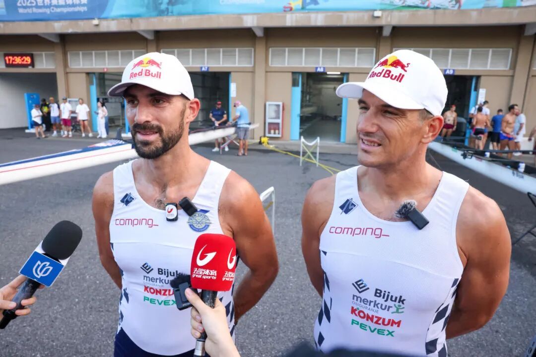 在率先抵达的选手中,克罗地亚赛艇兄弟马丁·辛科维奇与瓦伦特·辛科维奇无疑是焦点之一。这对兄弟组合堪称赛艇界的“传奇搭档”:2012年伦敦奥运会,荣获男子四人双桨银牌;此后三届奥运会,二人在男子双人单桨项目中实现三连冠。兄弟俩首次来到上海,对于淀山湖的赛道与赛事组织,他俩不约而同给出了高度评价。