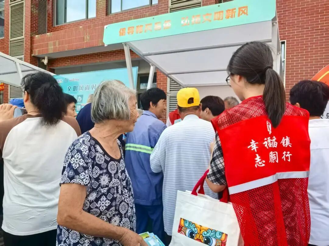 早晨,庙镇社区党群服务中心的广场人头攒动,热闹非凡。志愿服务活动吸引了许多市民,爱心义诊摊位前排起长队,医护人员为群众耐心讲解疾病预防、合理膳食知识。志愿者结合当前社会风尚建设相关要求,通过生动案例与通俗语言,向居民传递文明礼仪、邻里和睦、勤俭节约等重要理念。