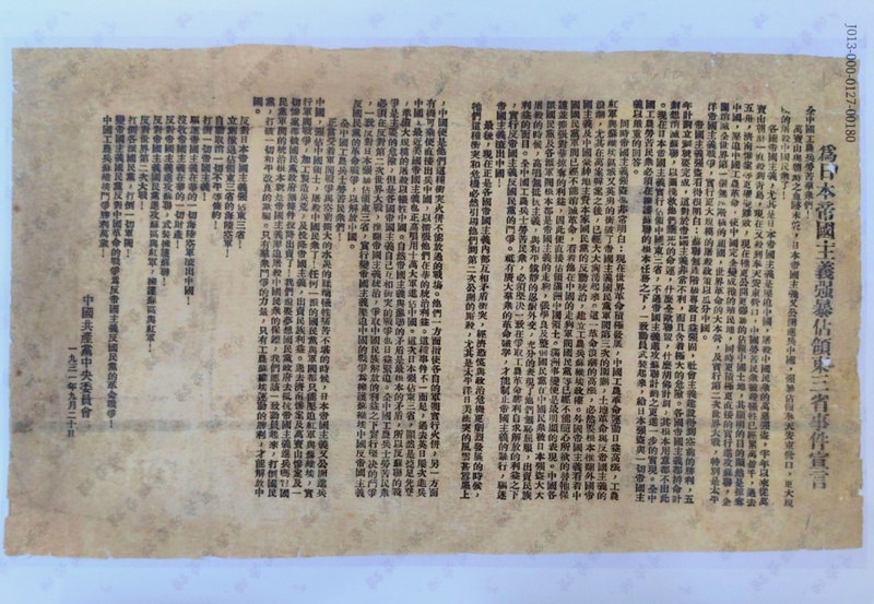 本期让我们深入了解中共中央在上海发表的《为日本帝国主义强暴占领东三省事件宣言》。