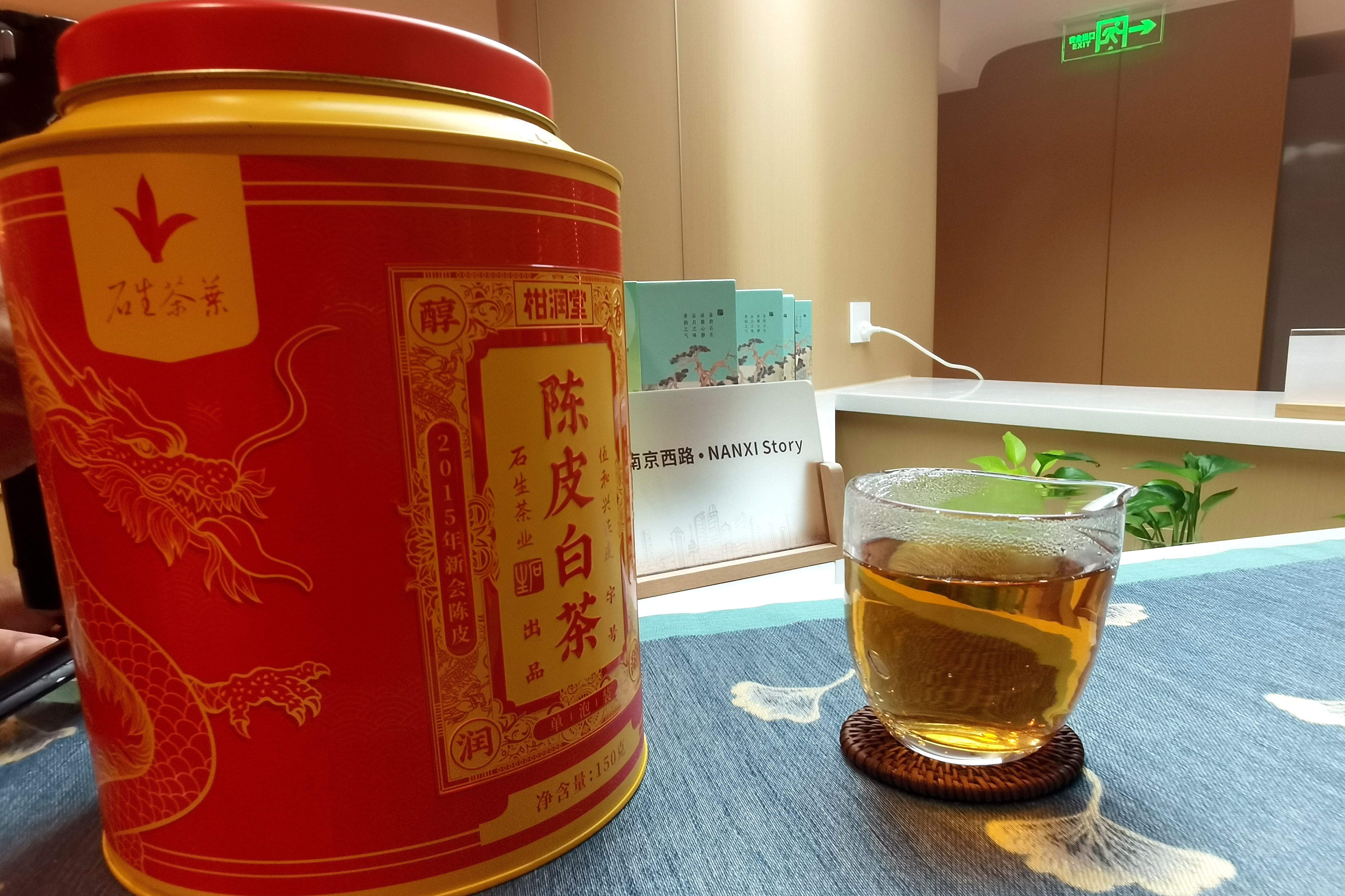 “陈皮茶技艺源自唐代煎茶法。因为独特口感和制作工艺,陈皮茶被誉为上海特色茶饮。我们的陈皮茶选用七年老白茶和七年以上老陈皮为主要原料,采用的独特窨制技艺也被列入第五批静安区非物质文化遗产代表性项目名录。”活动现场,专业讲师和大家分享起陈皮茶窨制技艺的创新发展以及陈皮白茶的冲泡要领。“用盖碗茶冲泡,水温需要达到100℃。如果煮饮的话,可以适当延长煮茶时间来增加茶汤浓度。”参加体验的市民边听讲解,边细细品评陈皮与白茶“1+1>2”的醇厚茶香和“药食同源”的养生智慧。