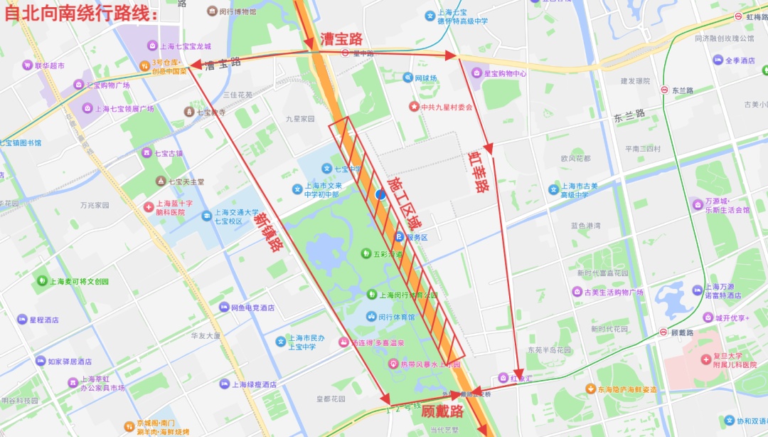 根据外环西段抬升工程8标段的施工进度安排,本周末将在闵行区S20外环高速(漕宝路—顾戴路)区域进行施工作业。 施工时间:9月20日(周六)—9月21日(周日)每日凌晨0:00至5:00,共计2日。 交通调整方案:施工期间(凌晨0:00—5:00),漕宝路—顾戴路外环高速区域实施间歇性交通管控以保障施工作业的顺利进行。 施工期间 车辆可通过以下路线绕行 一、外环外圈(自北向南)车辆绕行路线 1.通过漕宝路下高速向西至新镇路,沿新镇路向南至顾戴路往东进入匝道上高速; 2.通过漕宝路下高速向东至虹莘路,沿虹莘路向南至顾戴路往西进入匝道上高速。 二、外环内圈(自南向北)车辆绕行路线 1.通过顾戴路下高速向西至新镇路,沿新镇路向北至漕宝路往东进入匝道上高速; 2.通过顾戴路下高速向东至虹莘路,沿虹莘路向北至漕宝路往西进入匝道上高速。 温馨提示:出行前请合理选择路线,尽量避开上述提及的施工区域,并注意现场设置的相关引导和提示信息,确保通行安全。 提供的施工信息仅供参考,实际施工情况可能会有所变化,请以现场实际情况为准。此次施工可能会给您的出行带来不便,敬请谅解。 请相互转告并合理安排出行计划,确保出行安全。感谢您的理解与合作。
