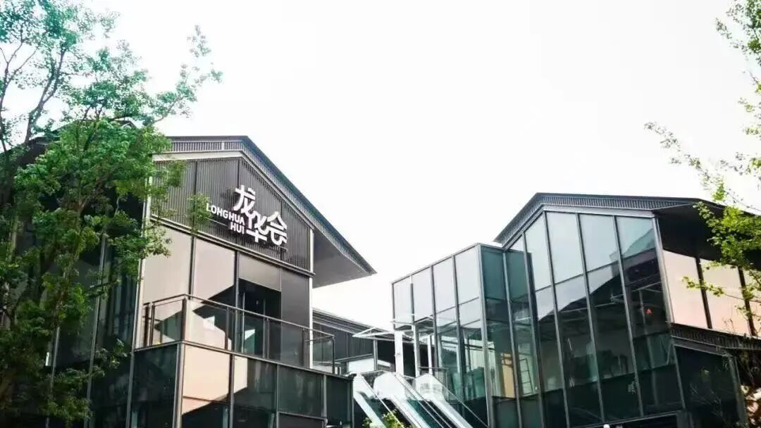 龙华会的整体设计仿照江南民居特色,以“重檐坡顶”为标志性元素,搭配玻璃、石材、瓦陶等多元材料,构建出“堂、庭、宅、院、水乡”等多重意境空间,同时融入 “上海老八景”文化符号,让“古今共生”的建筑美学成为非遗文化的立体展示馆。