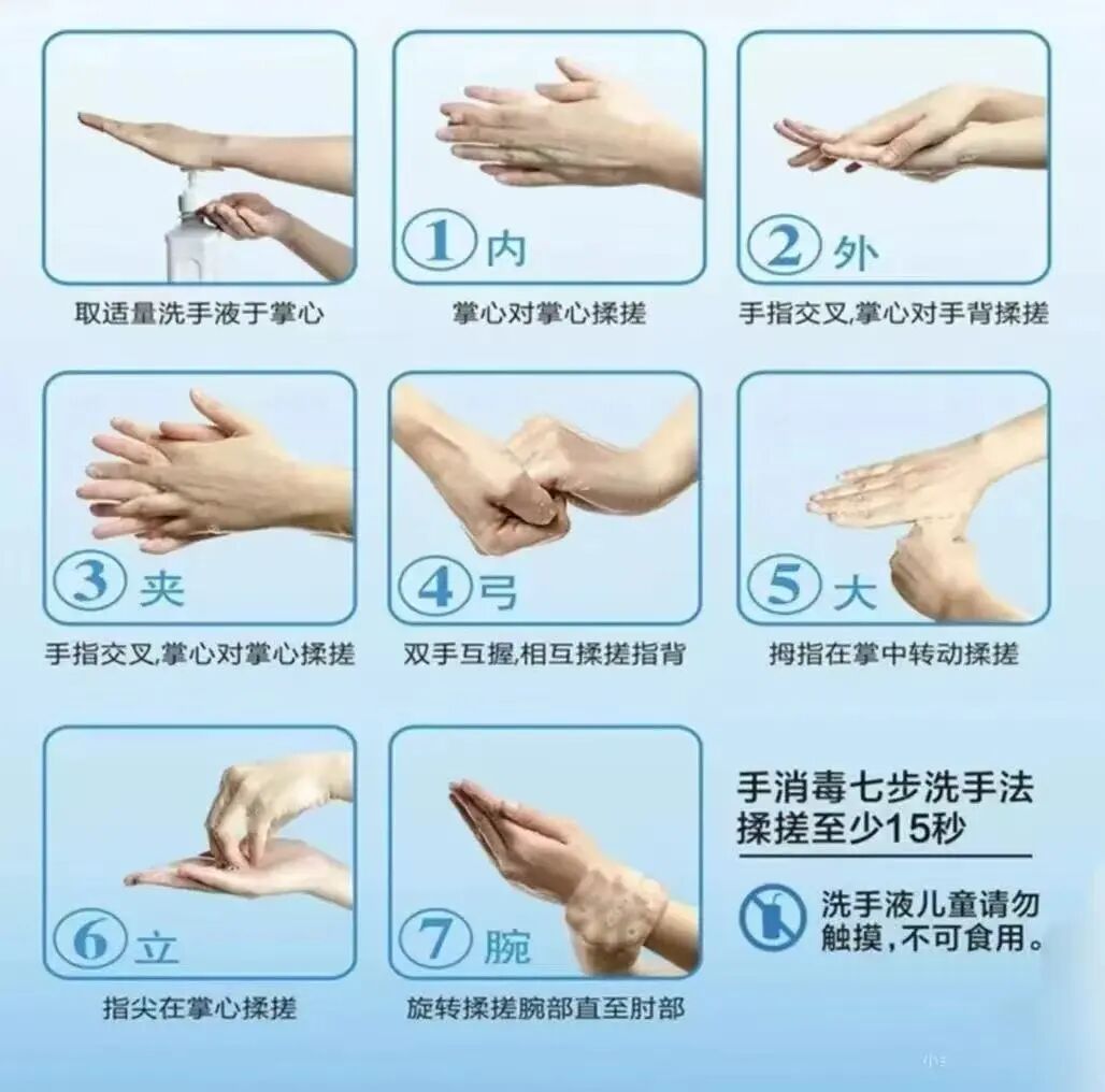 勤洗手:用肥皂和流动水洗手,至少20秒,尤其是在如厕后、进食前