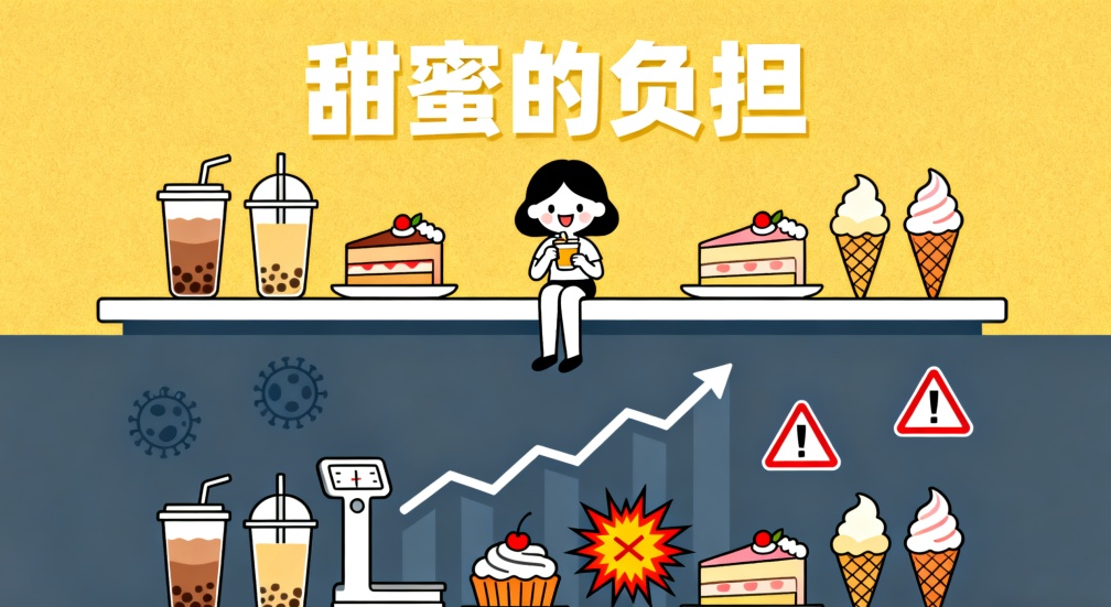 汽水、果汁饮料、运动饮料、奶茶、加糖咖啡/茶等,是饮食中添加糖的最大来源之一。一瓶可乐就含有超过每日推荐上限的添加糖(约35-40克)。饼干、蛋糕、甜点、冰淇淋、早餐谷物、风味酸奶、果酱、沙拉酱、甚至一些面包、调味酱和“健康零食”中都可能含有大量添加糖。蜂蜜、枫糖浆、浓缩果汁等天然甜味剂,虽然含有少量其他营养素,但其主要成分仍然是糖(果糖和葡萄糖),过量摄入对健康的影响与精制糖相似。