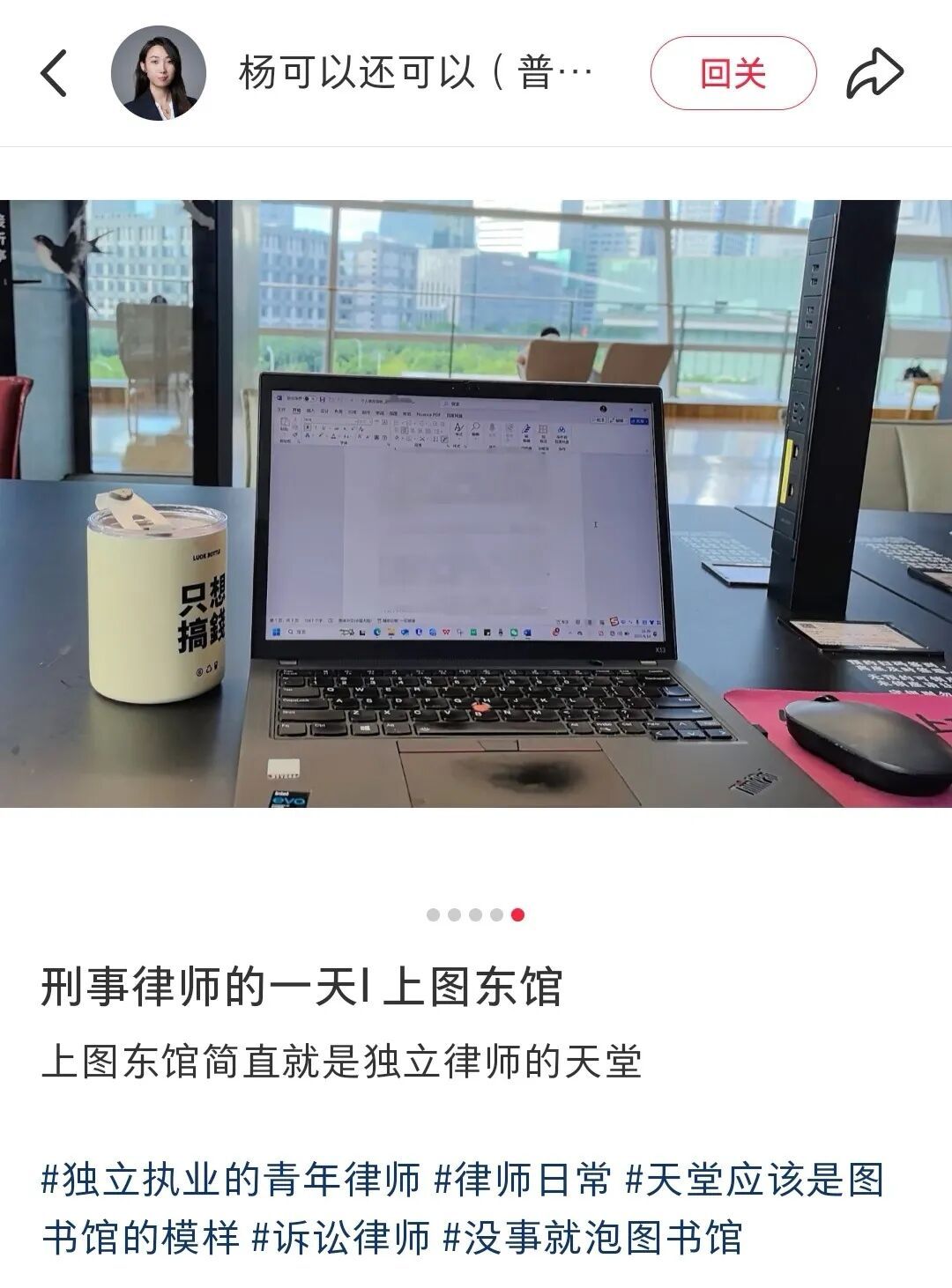 小红书读者@杨可以还可以(普法版)表示,平时不用坐班,不用跑外勤的时候就去上图东馆加个班,东馆很适合时间自由的独立律师。