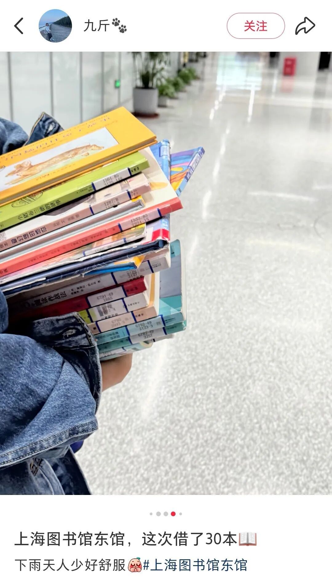 来东馆岂能空手而归?要知道,上海图书馆的单次最大外借册次为15本。小红书读者@九斤 带小朋友一起来借书,抱得30本回家!