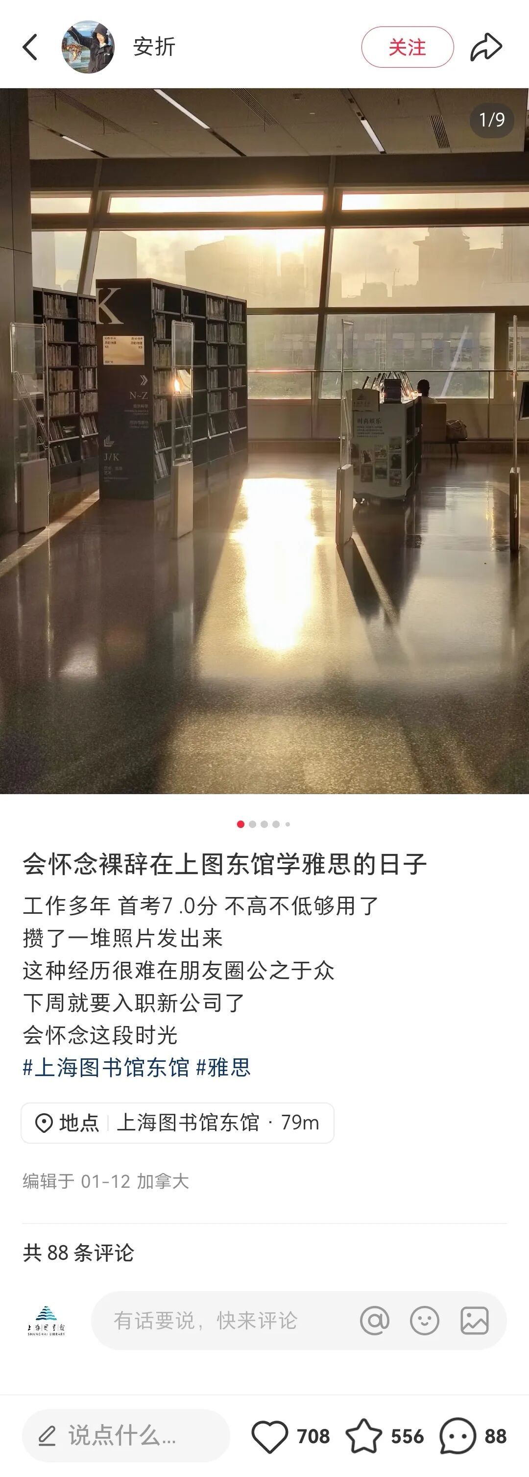 小红书读者@安折 在入职新公司前分享了自己在东馆备考雅思的经历,照片中的朝阳与余晖,无声记录着每一日的奋斗。