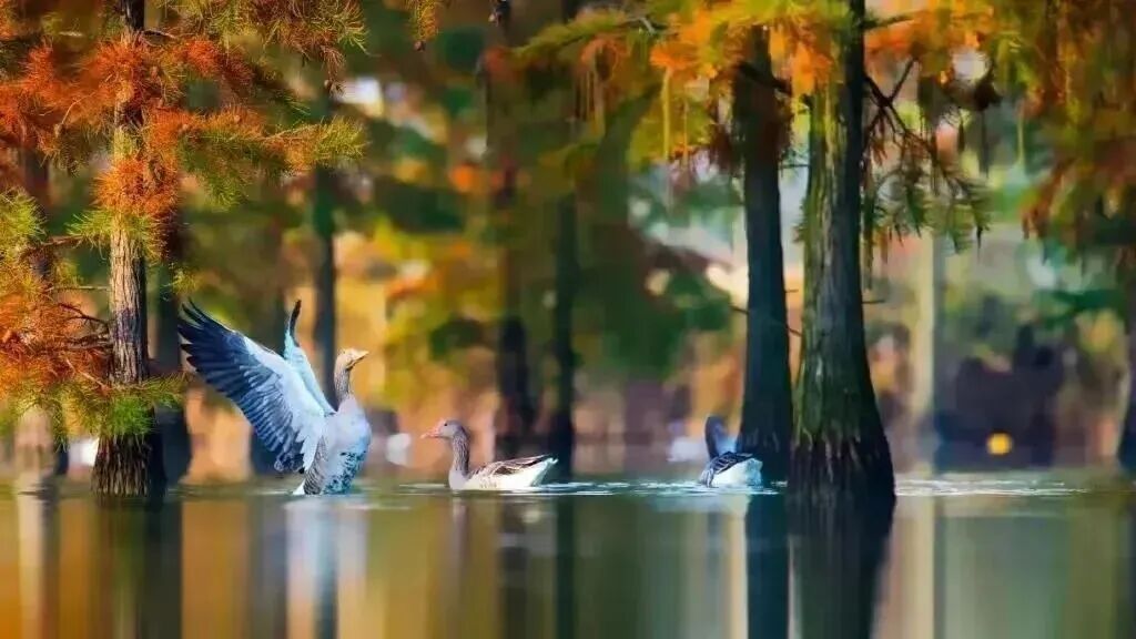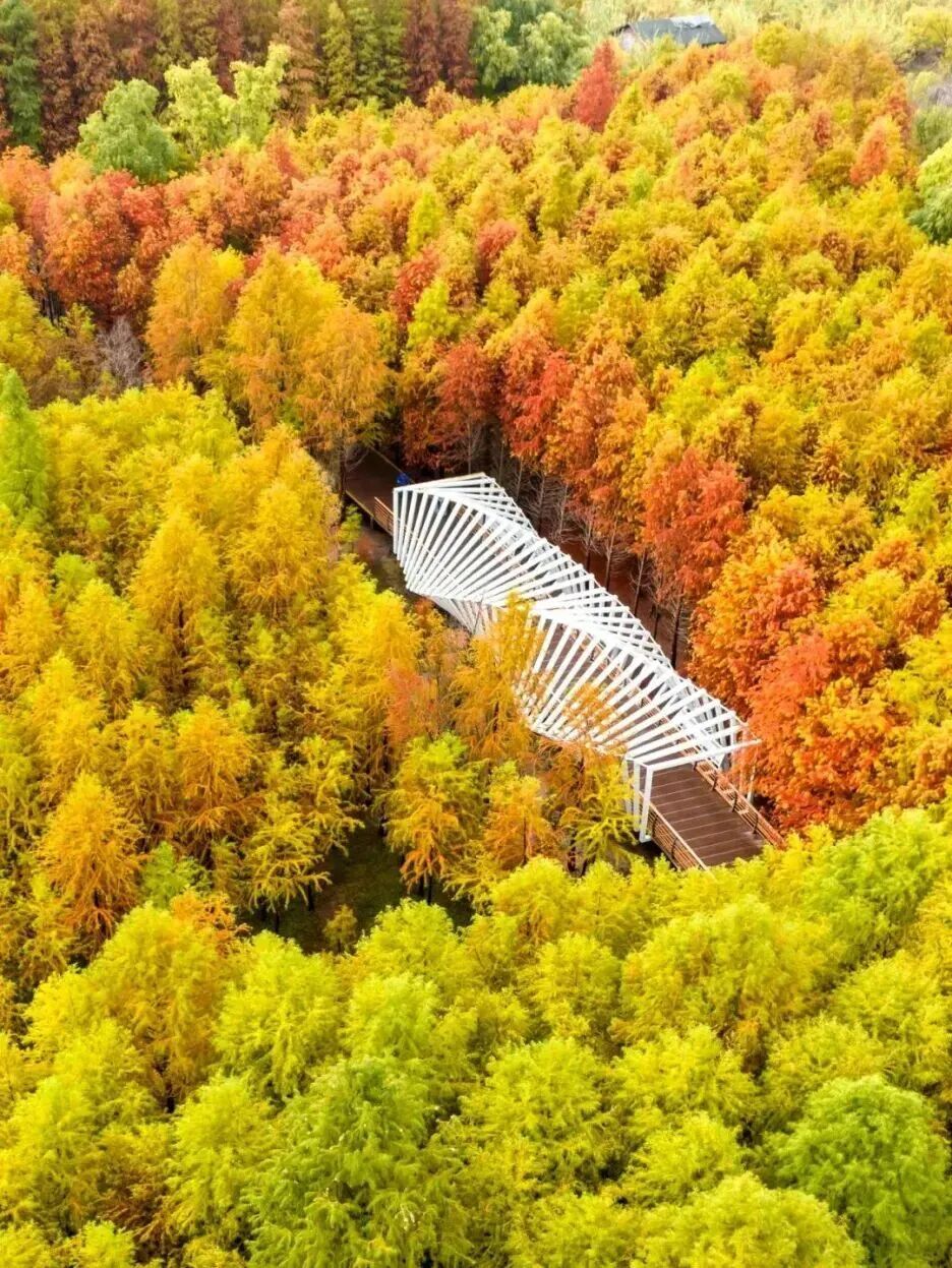 秋风踱过杉堤 将一池碧水染作橙调油画 粉黛垂首 以雾粉的柔睫垂落风的形状 染秋日的烟霞 稻田翻涌波浪 波光正衔着飞鸟的倒影 所有色彩都沉溺于长江入海的呼吸里 西沙明珠湖景区 水杉最佳观赏期:10-11月 西沙明珠湖景区、万达广场周边 最佳观赏期:9-11月 海岛艺术田园 最佳观赏期:8-10月