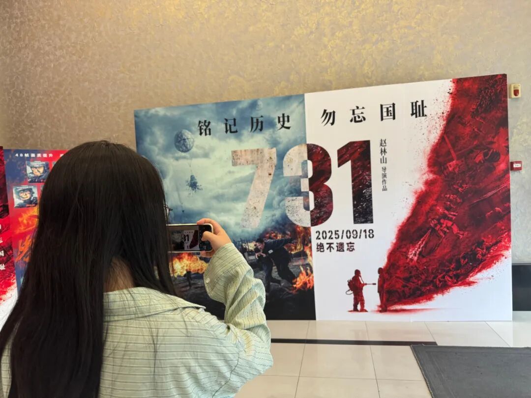 嘉定影剧院运营部经理卢琼介绍,电影《731》一直备受关注,暑假期间就有市民陆续咨询上映情况,“我们特意将首场放映放在9点18分这个特殊的时间点,警醒世人‘警钟长鸣’。”