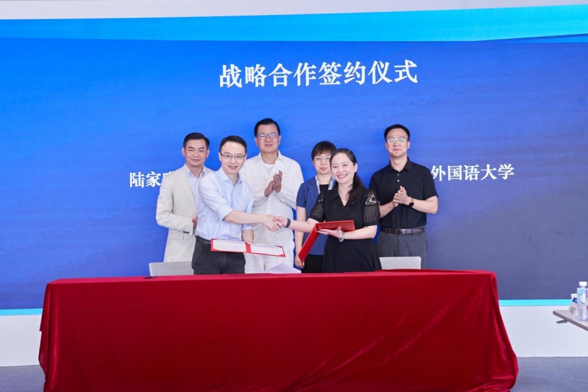 在浦东新区区委统战部副部长陈琳霞、陆家嘴管理局副局长周海东、上外国际金融贸易学院党委书记章玉贵以及嘉御资本董事长卫哲的共同见证下,陆家嘴金融城发展局与上海外国语大学正式签署战略合作协议。未来双方将在人才培养、实习实践、企业出海、学术交流、决策咨询等领域展开深度合作。陈琳霞副部长以“三个高”点赞此次合作,希望以此次签约为契机,链接上外、陆家嘴金融城发展局和浦东新区资源,谱写地校合作新篇章。