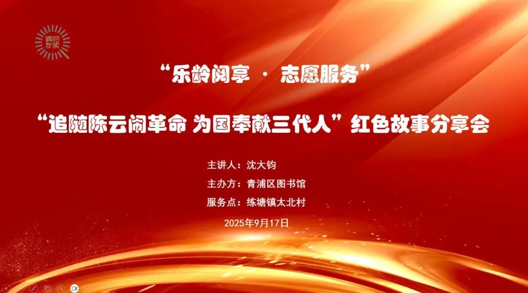 9月17日下午,由青浦区图书馆“清阅朴读”美丽乡村读书会与练塘镇太北村联合举办的“追随陈云闹革命,为国奉献三代人”红色故事分享会在太北村太浦会客厅举行,练塘镇30余名预备党员参与。