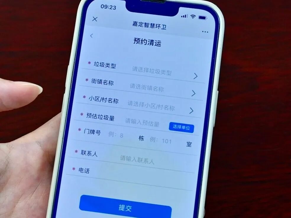记者打开“嘉定智慧环卫”微信服务号发现,只需按照页面提示填写所属街镇、小区名称、预估垃圾量、详细门牌号及联系方式等信息,即可完成预约,全程用时不到五分钟,操作简便高效。