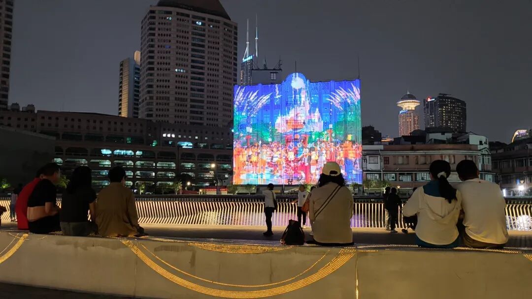 对于许多生活在上海的人来说,今年苏州河的夜晚多了一重温柔的期待。每周五周六,行至静安苏河湾亲水平台,总会与一片光影不期而遇:它们静默地投映在老墙之上,或轻盈流淌于夜色步道,不张扬,却温暖如诗,嵌入日常。