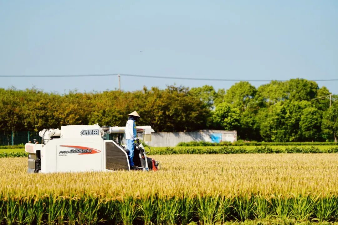 金秋时节 宝山区罗泾镇的田野上 遍地金黄 稻浪飘香 一派丰收的喜人景象 大型联合收割机 在金色稻海中来回穿梭 轰鸣声不绝于耳 高效完成收割、脱粒作业 确保稻谷颗粒归仓
