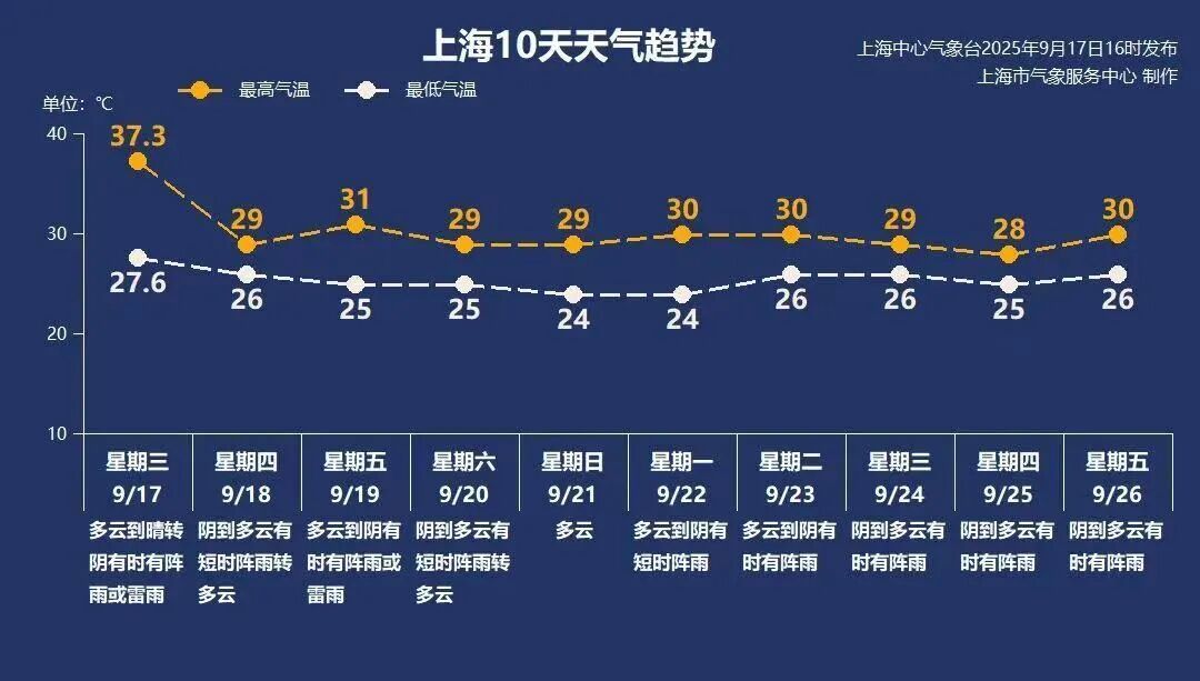 昨天开始,申城天气转凉,最高气温终于摆脱了“3”开头的数字,跌至“2”开头。不少市民用“凉爽”“舒服”来形容天气,都表示体感舒适了许多。记者来到和平公园,发现里面的游客依然不少。喜欢跳舞的市民久久不愿离去,还有不少家长因为凉爽的天气,专门带着小朋友来游玩。 和平公园木栈桥边,杨柳依依,阵阵微风拂过,垂柳随风飘荡。园内的人行道上,有不少正在进行快走健身的市民,撑伞避暑的人明显少了很多。 公园里,低龄的小朋友也多了起来,这个随着音乐摆动的小朋友还穿起了长衣长裤。家长说,之前天气太热了,一般不带她出来。今天温度降下来了,才领她来公园走走。 和平公园内一直活跃着数支社区文艺团队,虹舞台是他们平时活动较多的区域。社团成员们说,高温天里,他们一般会缩短活动时间,早早就离开了。但是现在因为天气格外凉爽,阳光也不再那么刺眼,他们延长了活动时间,让队员们跳得更尽兴一些。 未来数天 高温“偃旗息鼓” 但是接下去 上海阵雨天气也明显增加 气温总体比近期下降一个台阶 全面回落至31℃以内 记者:黄镏舒 图片:黄镏舒