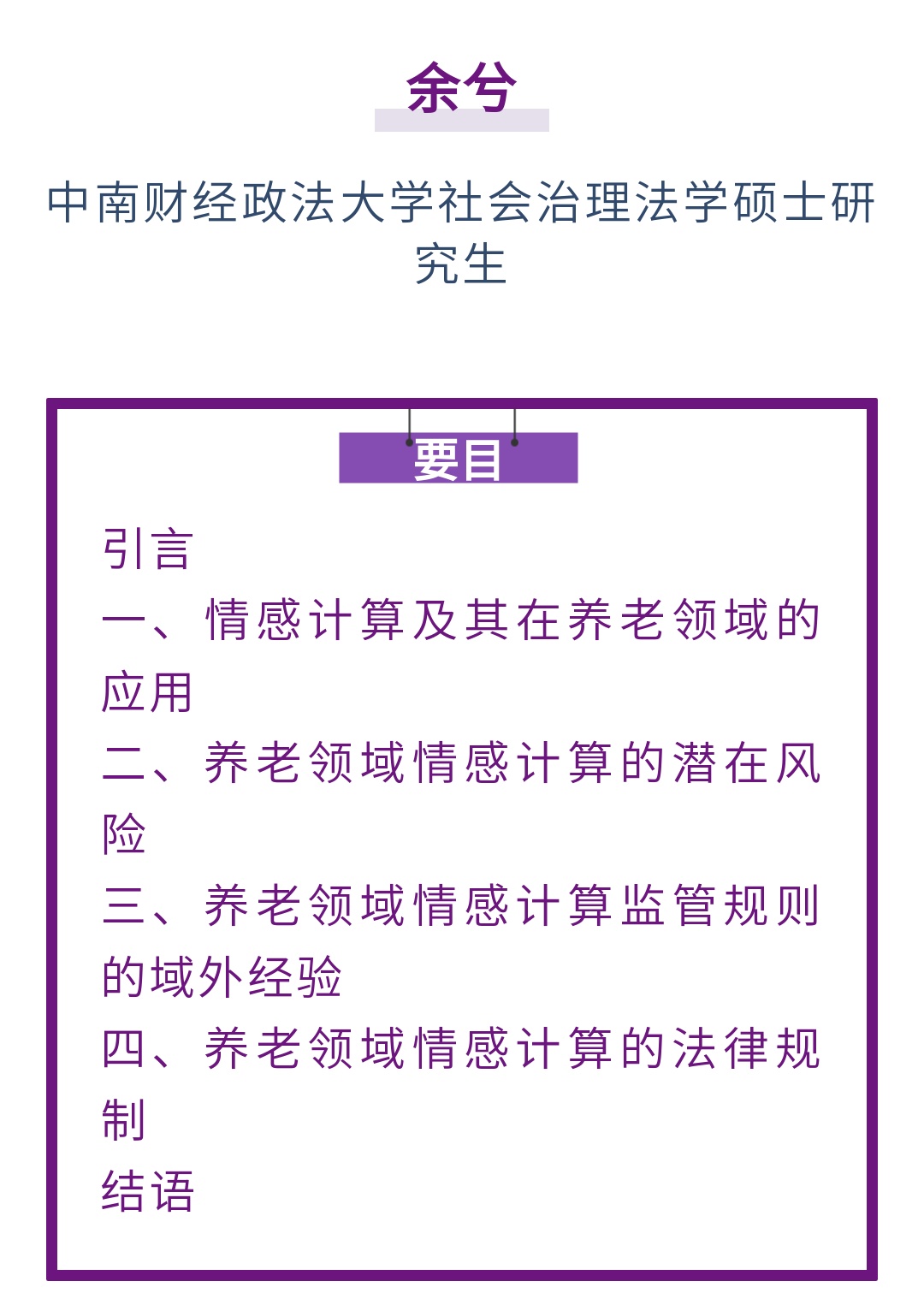 在我国整体人口老龄化趋势愈演愈烈的当下,以日新月异的科学技术作为工具帮助缓解所带来的社会养老困境是明智之举,亦是响应促进智慧养老产业深度发展总体规划的重要要求。智能技术时代下的情感计算是人工智能衍生的一大子集,为进一步优化情感计算在养老领域的应用,对其新的内涵尚需明确、发展脉络仍需梳理。在现有的使用场景里,养老领域情感计算的各类风险已初现端倪,如未及时加以深入分析与综合治理会产生诸多负面效应。结合我国已施行的数据安全法律保障体系以及情感计算自身的先进技术特性提出从基础法律原则、主体自律规范到配套治理措施的法律规制建议具有紧迫性与现实意义,有助于在有效发挥技术优势的前提下切实保护老年群体的权益,匡正行业风气,促进科技向善。