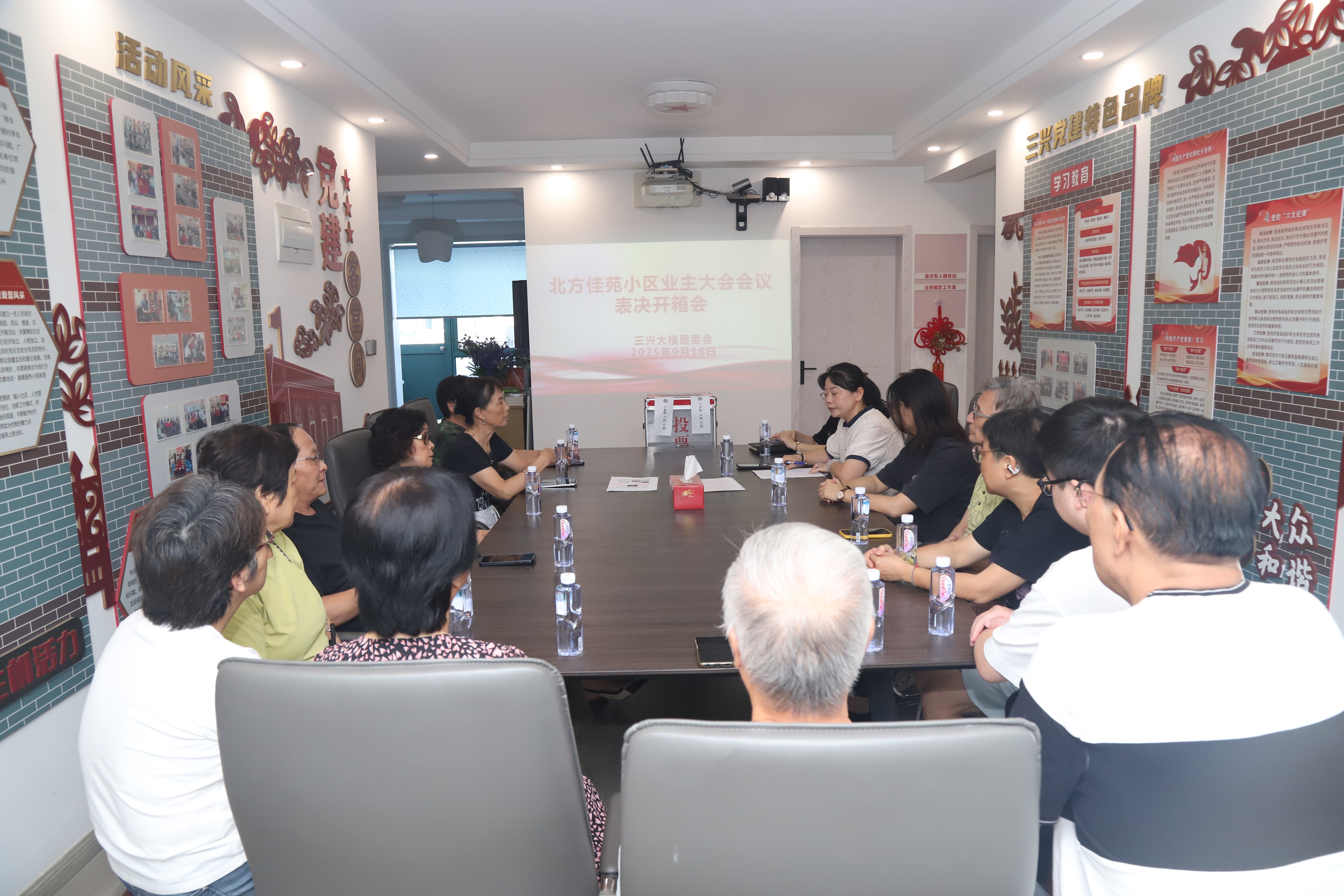 “杨阿姨,刚刚在居民代表的见证下,我们已经对今天的业委会换届选举结果进行了开箱计票,其中就包括您通过‘拇指表决’远程投下的这一票,谢谢您的配合!”9月16日,在芷江西路街道三兴大楼居民区北方佳苑小区业委会换届选举的表决投票现场,社区工作者朱文蔚通过微信,向远在闵行区的居民杨阿姨告知了包含其远程投票在内的计票结果。