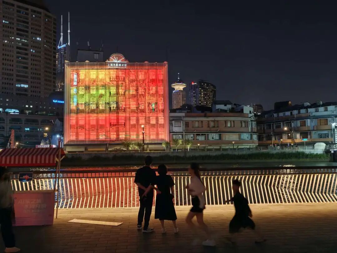 将苏州河畔的历史记忆转化为可视、可感、可传承的文化体验。红色文化不再停留于书本与旧址,而是借光重生、随影入心,真正走进市民的日常视野,激发新时代的爱国共鸣。而在更早前,静安与中华艺术宫、SMG幻维数码合作推出“上海光影美术馆”IP,通过专业策展与科技叙事,进一步提升光影艺术的文化承载能力,成为第三届“闪亮·上海”静安国际光影展(2025)常态化展映的重要组成部分。这是一种以轻量、科技、互动的方式“活化”历史空间的创新实践。光影不再转瞬即逝,而是成为承载城市文脉、讲述中国故事的重要载体。