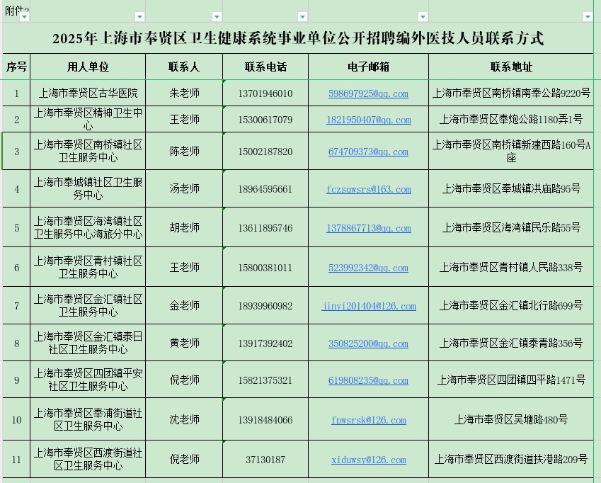 各招聘单位具体的岗位聘用要求、资格条件等,详见《2025年上海市奉贤区卫生健康委员会部分事业单位编外医技人员公开招聘简章》(附件1,以下简称《招聘简章》)。