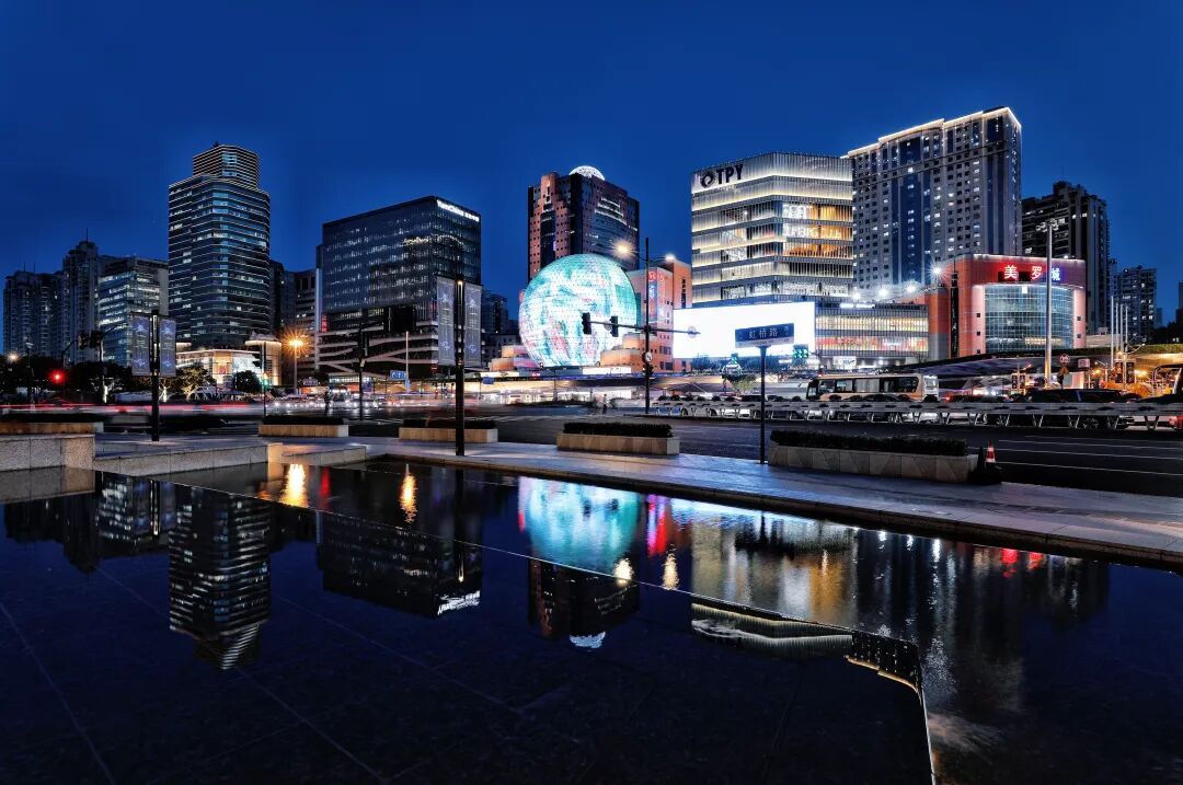 徐家汇商圈的繁华背后,也藏着丰富的镜像风景。商圈内的景观水池,将周边的摩天大楼、霓虹灯光倒映在水中,夜晚时分,灯光与倒影交织,勾勒出璀璨的都市夜景。