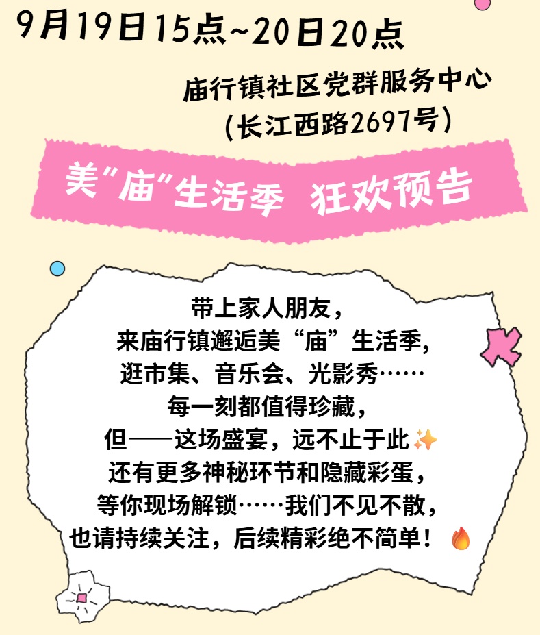 9月19日15点~20日20点,宝山区庙行镇即将解锁一场关于美好生活的沉浸式体验——美“庙”生活季系列活动重磅启动!