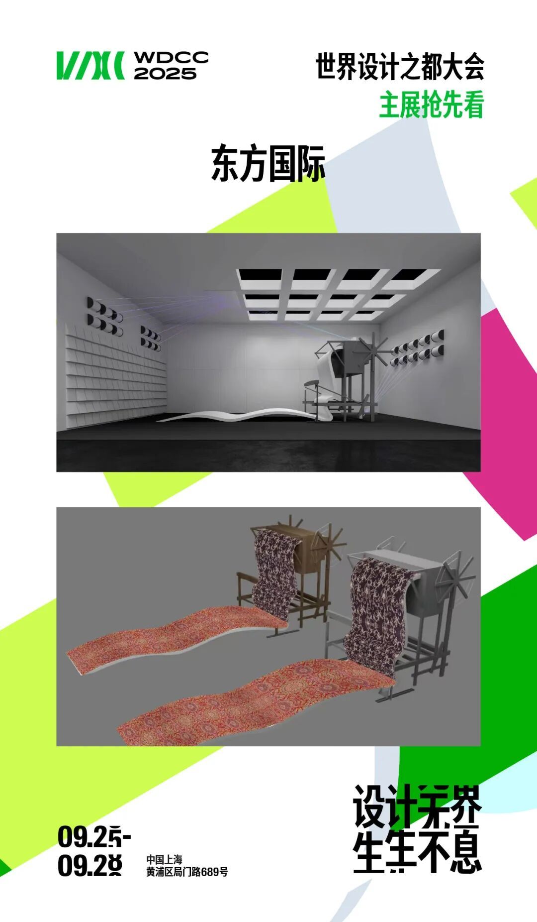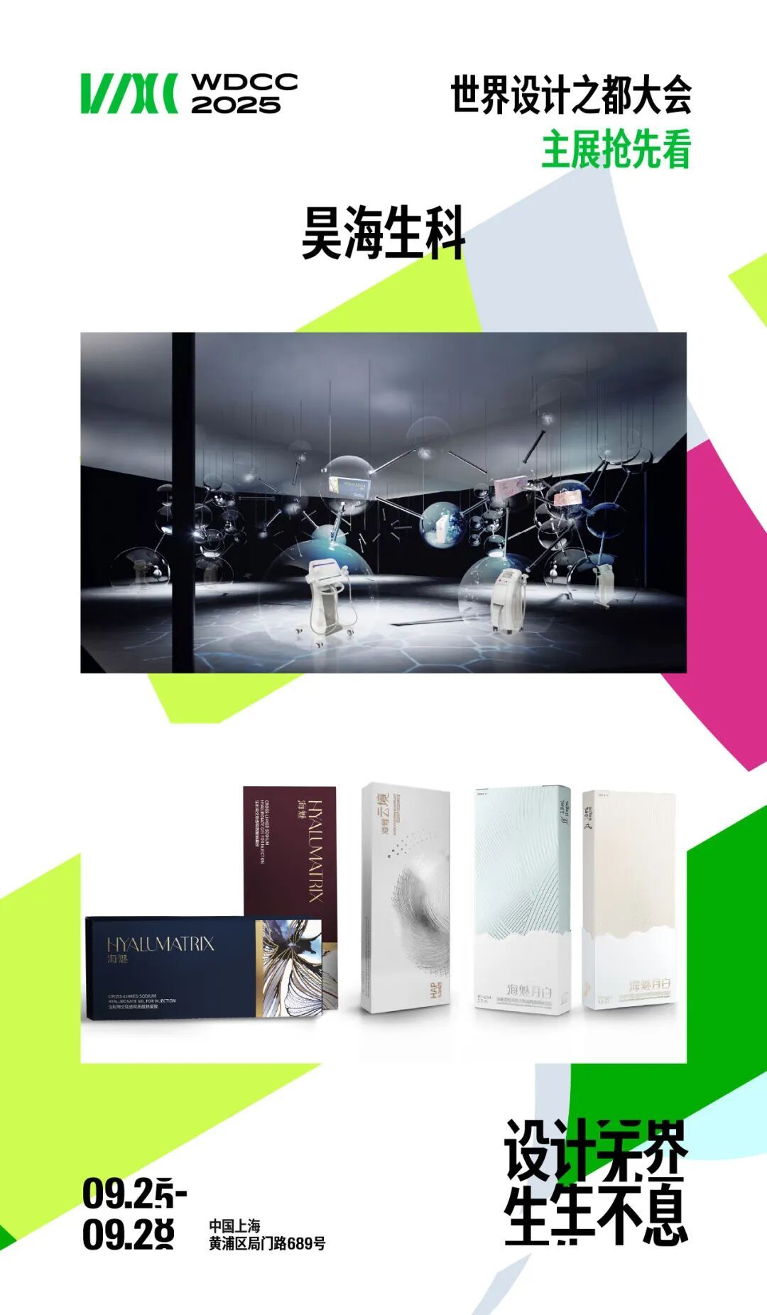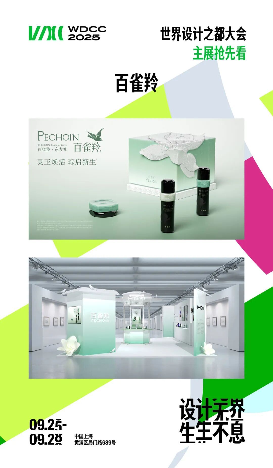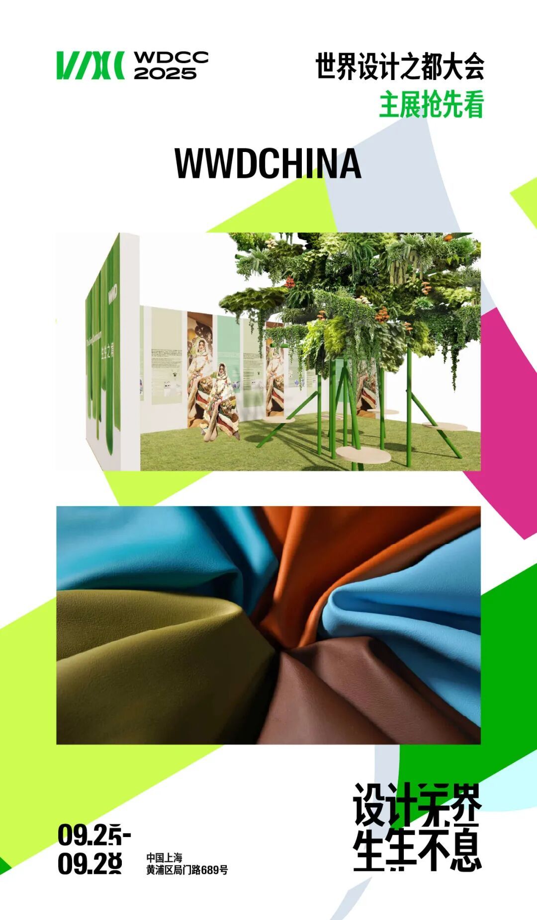 2025世界设计之都大会由上海市人民政府、联合国教科文组织共同主办,主会期为9月25日至28日,主会场设在黄浦区局门路689号。今年大会以“设计无界 生生不息”为主题,主展区以1.5万平米空间汇聚近500个品牌、3000余件展品,其中国际品牌占20%,新锐品牌高达60%,打造了一场设计与科技、生态与时尚交融的盛宴。