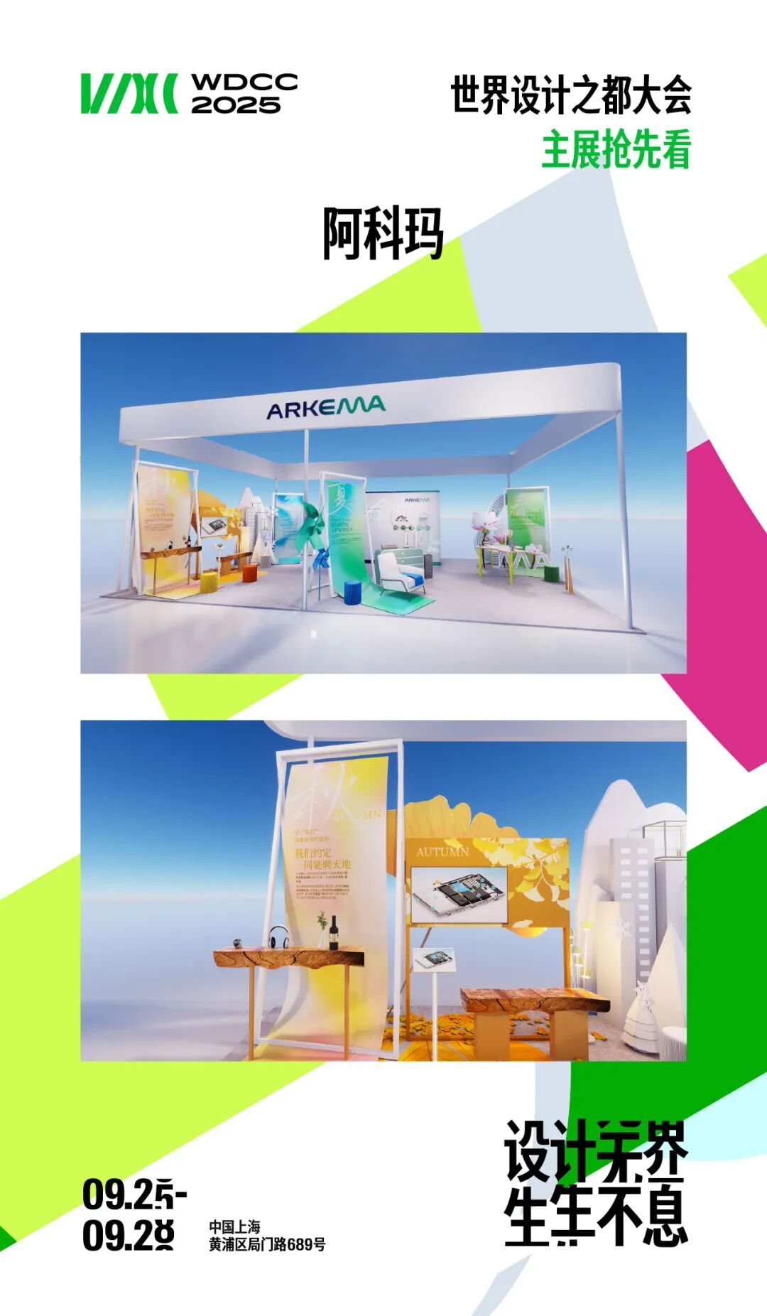 展区将通过“春夏秋冬”四季之约来全面展示创新材料设计如何助力 1.5 度生活方式。还有互动游戏“气候拼图快闪”等你来~